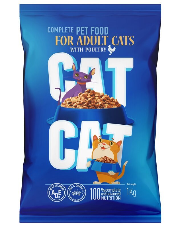 Cat Cat sausas maistas suaugusioms katėms su paukštiena. Cat Cat sausas maistas tinka kasdieniai visavertei katės mitybai. Sudėtyje yra katei reikalingų vitaminų. Cinkas, Omega 3 padeda palaikyti tinkamą odos ir kailio būklę.